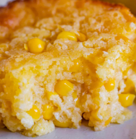 Our traditional scratch-made southern cornbread batter folded with plump farm fresh corn kernels topped with a sugar sprinkle and baked to a golden brown served warm with a side of butter
